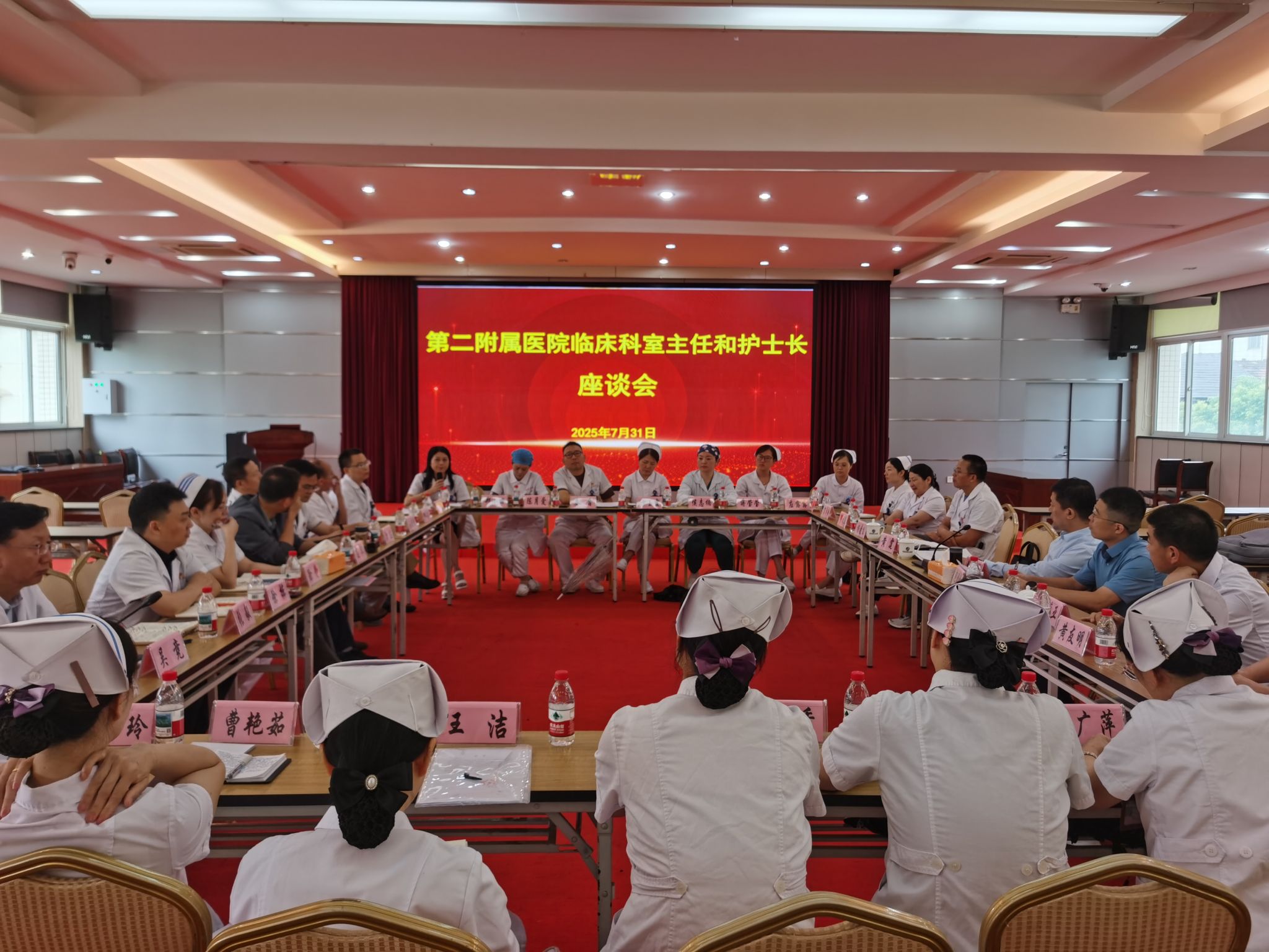 发展规划处(医院管理处),第二附属医院党政领导班子、相关职能科室负责人、临床科室主任、护士长和青年医师代表参加座谈会。(黄霆/文 第二附属医院/供图)