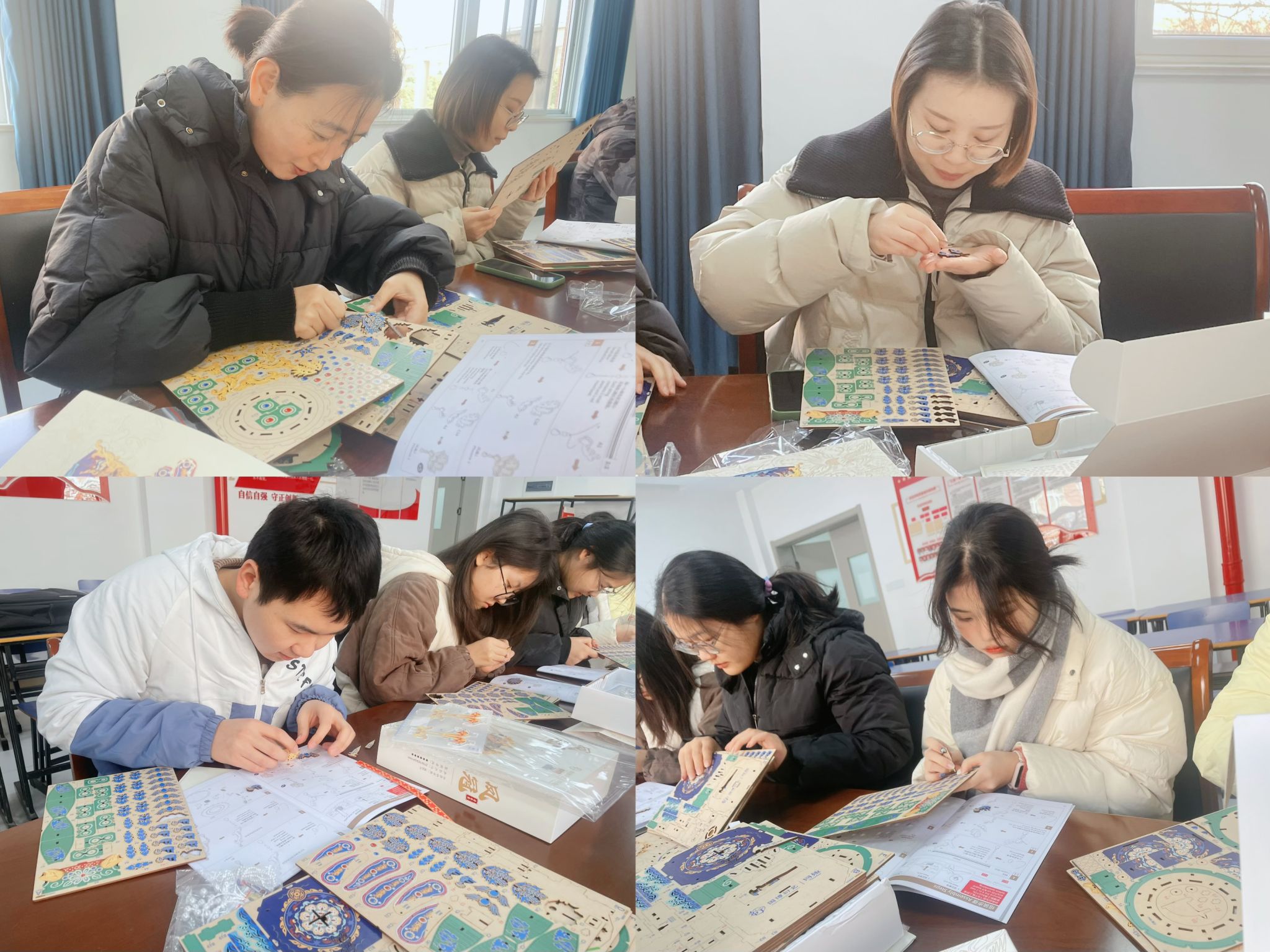 为传承和弘扬中华优秀传统手工艺,丰富师生精神文化生活,喜迎元旦到来,12月31日中午,检验学院在学院会议室组织开展“非遗韵味迎元旦 文化传承庆新年”——孝端皇后凤冠制作活动,让大家一起学习和感受非遗之美。