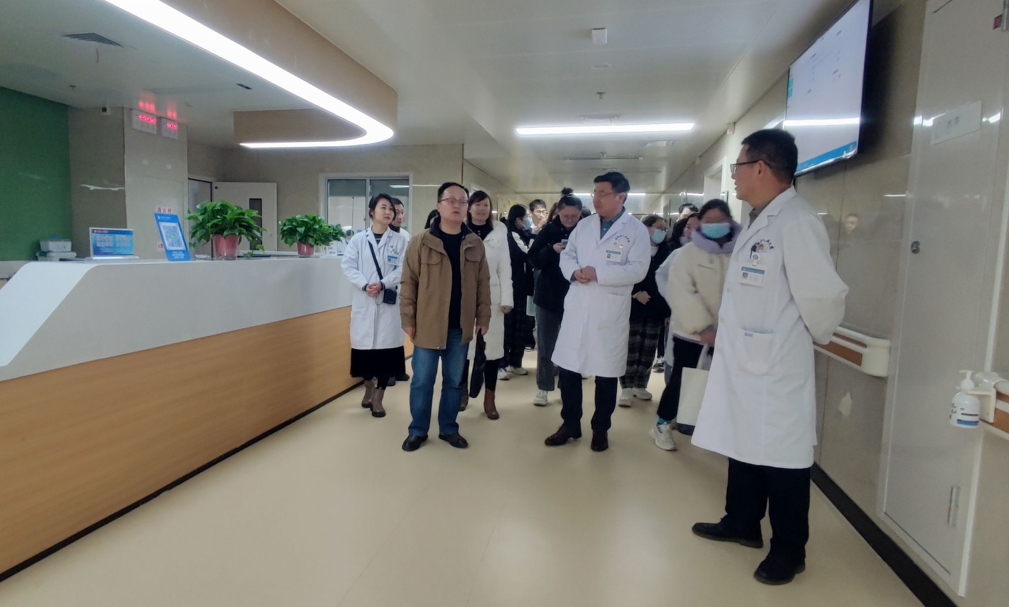 洽谈会后,青阳县人民医院党委书记王晓为、院长丁江水、副院长徐良斌带领师生实地参观了医院新院区门诊大楼、住院部等相关诊疗设施和环境。通过实地参观走访,同学们对医院干净舒适的医疗环境、先进的硬件设施、积极向上的医院文化有了更直观认识。