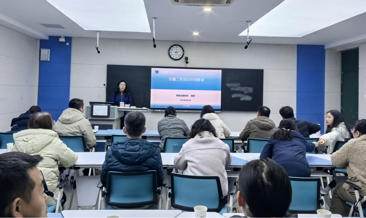 教务处秦莉老师围绕2024年度安徽省质量工程项目申报指南,分别就各类项目的申报条件、建设目标、建设内容和验收标准作了详细的解读,并对本次质量工程项目申报中出现的新变化以及项目建设中需要注意的问题进行了梳理,帮助新进教师们厘清了项目申报的脉络,明确了项目建设的要求。