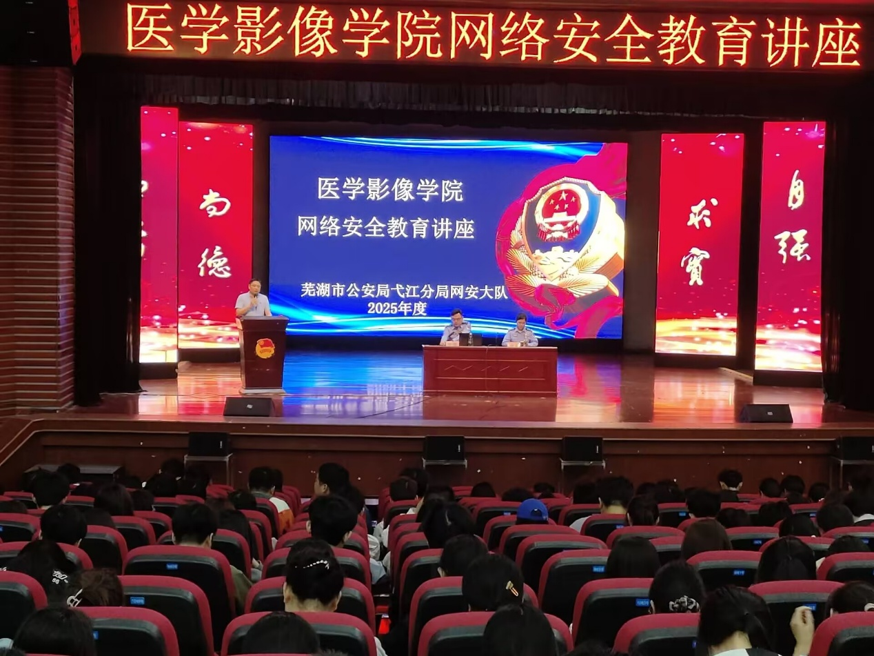 为进一步提高学生网络安全意识和预防电信网络诈骗能力,切实保障学生财产安全,营造平安和谐的校园环境,4月22日,医学影像学院在大学生活动中心举办网络安全教育专题讲座。本次讲座特邀芜湖市公安局弋江分局网安大队杨祺和蒋笛警官担任主讲,学院党委副书记黄侃主持,全院800余名学生参加。