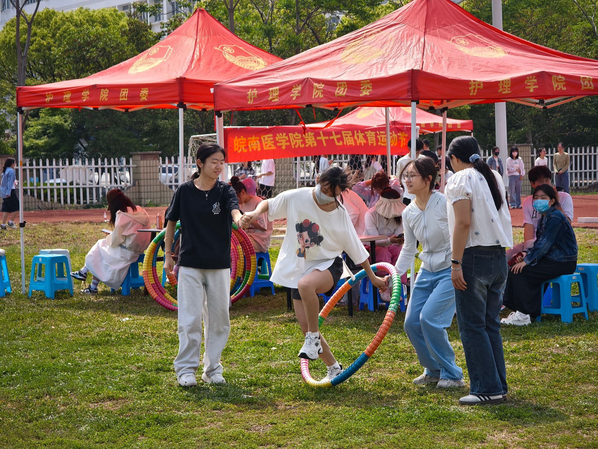 本届体育运动节沿袭“校、院两级学生会协同合作,学生社团积极参与”的活动形式,共有10个学院和10个学生社团申办、承办趣味项目。活动期间,公共卫生学院承办的“旱地龙舟”、检验学院组织的“文武双全(4×100接力问答)”等项目,巧妙融合团队竞速与策略思维,有效激发了学生的协作智慧与集体荣誉感;法医学院的“你的地盘我做主”着重考验团队战术协作能力;医学信息学院的“趣味篮球挑战赛”将篮球技巧与趣味任务相结合,寓教于乐;护理学院的“一圈到底”、口腔医学院的“不倒森林”则在方寸空间内锤炼队员的默契配合与信任度;人文与管理学院的“沙包叠叠乐”、麻醉学院的“水到渠成”等项目,通过重力平衡挑战,引导学生锻炼风险决策与沉着应对的能力。赛场上,各代表队凝心聚力、奋勇争先,此起彼伏的呐喊声与欢呼声交织升腾,充分展现了皖医学子顽强拼搏、昂扬向上的精神风貌。由护理学院牵头组织,检验学院、人文与管理学院、口腔医学院共同参与的“舞力全开”集体舞蹈活动在滨江校区南区精彩上演。伴随着激昂奋进的旋律,同学们热情起舞,动作整齐划一,青春活力四射。该活动不仅锻炼了身体协调性,更在欢快的氛围中增强了团队向心力,促进了不同学院、专业学生间的交流融合,成为本届体育运动节中一道亮丽的青春风景线。