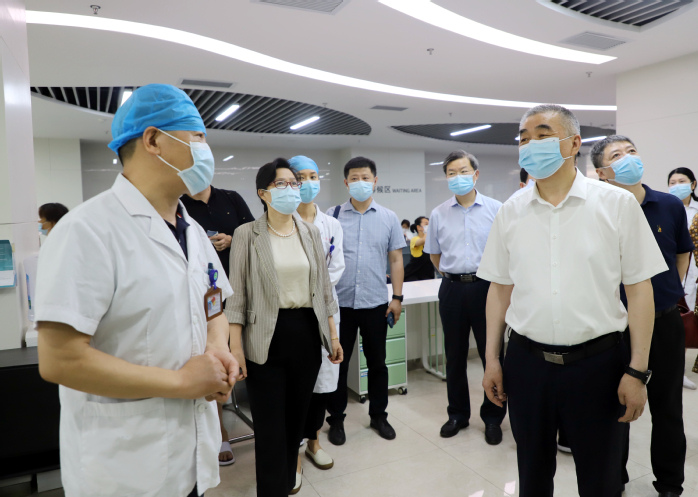 6月17日上午,省卫健委党组书记刘同柱、委办公室主任武云飞、医政医管处处长马勇、副处长彭玉池,在校党委书记夏劲松、党委副书记吴金月、副院长徐朝阳陪同下,到我校两所附属医院调研指导工作。