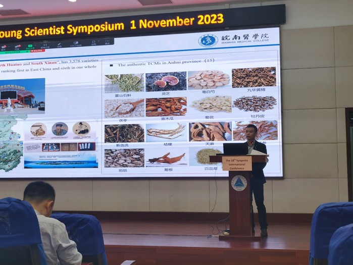 本次会议汇聚了中科院上海有机所、中科院上海药物所、中科院昆明植物研究所、中国海洋大学、中国农业大学、北京协和医学院、北京大学医学部等众多国内外科研机构和院校的专家、学者,围绕天然产物、有机合成、海洋药物等主题展开了专题报告及讨论。我校药学院青年教师吴江平博士参加会议并在青年科学家论坛中作“Studies on polysaccharide components and bioactivities of two traditional Chinese medicines in southern Anhui Province”的主题报告,介绍了安徽省多糖药物工程技术研究中心、安徽省皖南地区植物药活性筛选与再评价工程实验室等省级科研平台在活性多糖筛选与应用方面的最新科研成果。