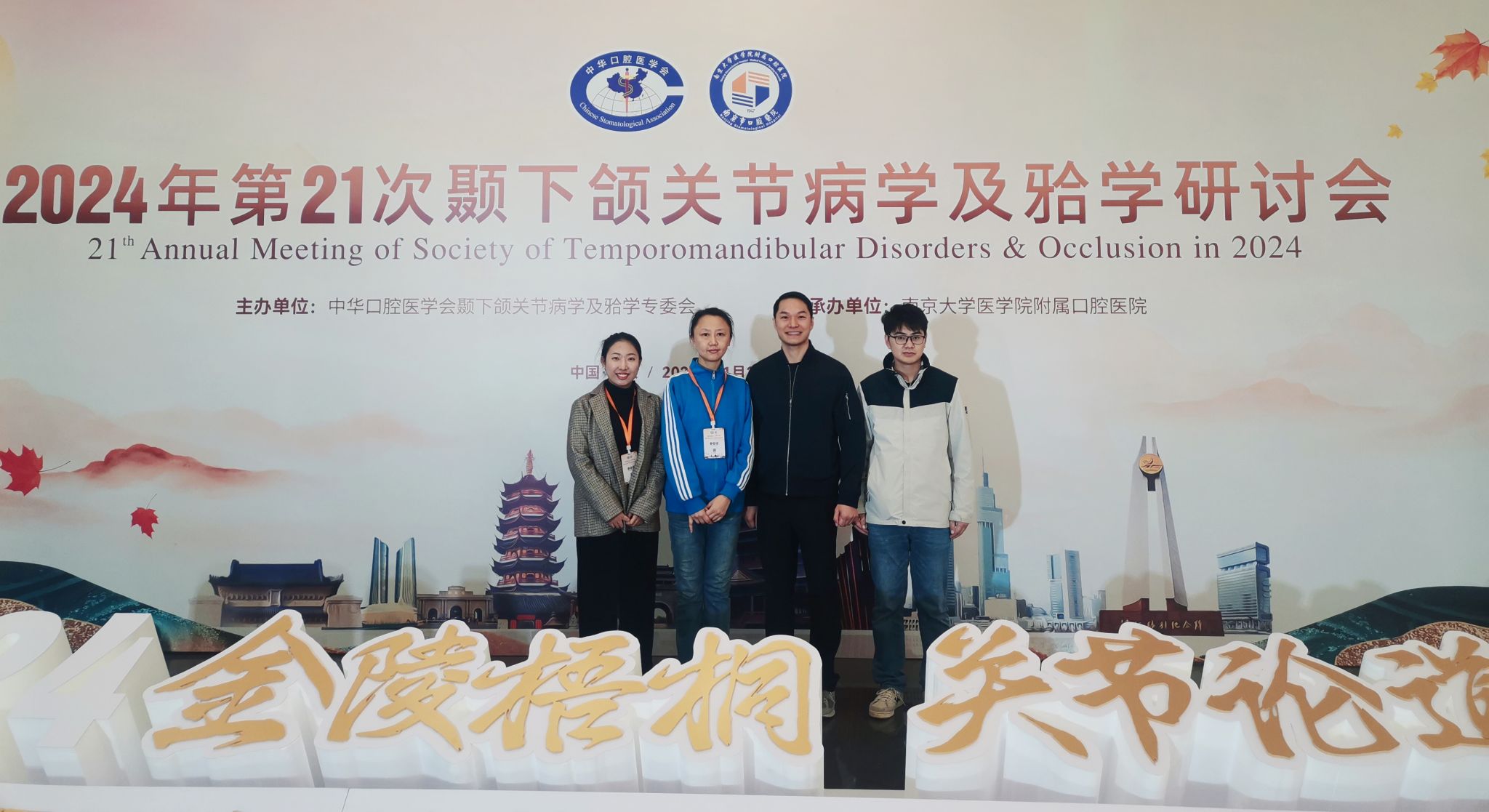 近日,中华口腔医学会颞下颌关节病学及牙合学专业委员会第21次颞下颌关节病学及牙合学学术研讨会议在江苏南京召开,吸引了来自全国各地从事颞下颌关节病学、牙合学、正畸、修复、种植、颌面外科和口颌面疼痛专业的学者、临床医师和研究生,共同探讨了口腔颌面部颞下颌关节领域的疼痛机制、最新诊疗技术和未来发展方向等内容。我校口腔医学院林家婷、周嵩琳老师带领研究生同学们参加会议。